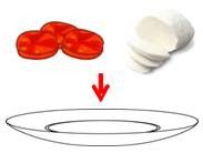 Disposez les tranches de tomates et de mozzarella dans une grande assiette.
